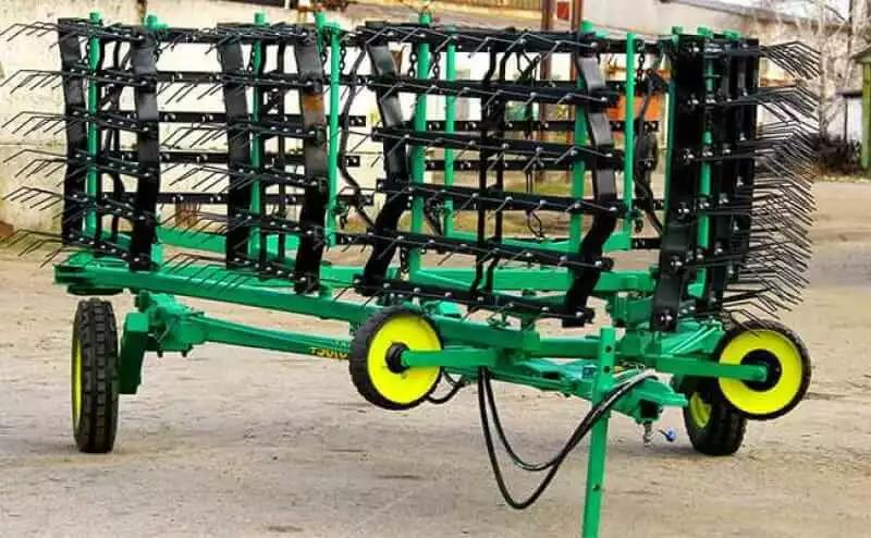 Бокові балки з’єднані з центральною балкою шарнірно, що дозволяє при транспортуванні складати бокові балки, зменшуючи ширину борони. В робоче і транспортне положення робочі органи борони переводяться за допомогою гідросистеми.