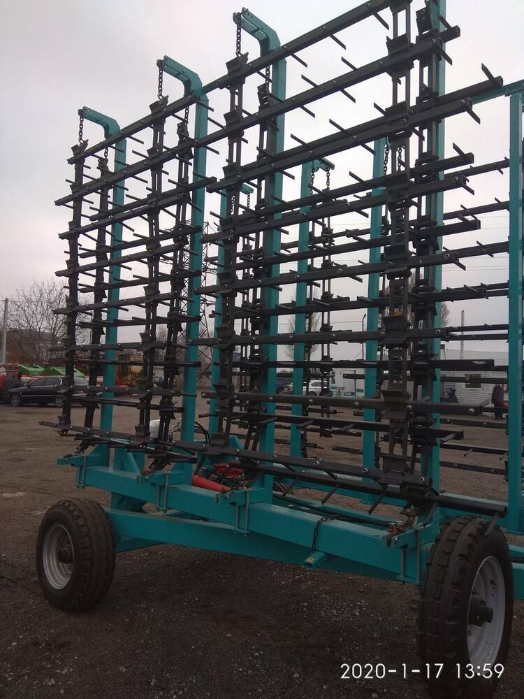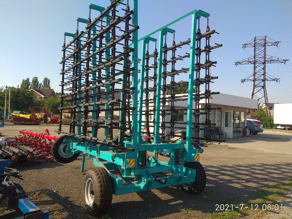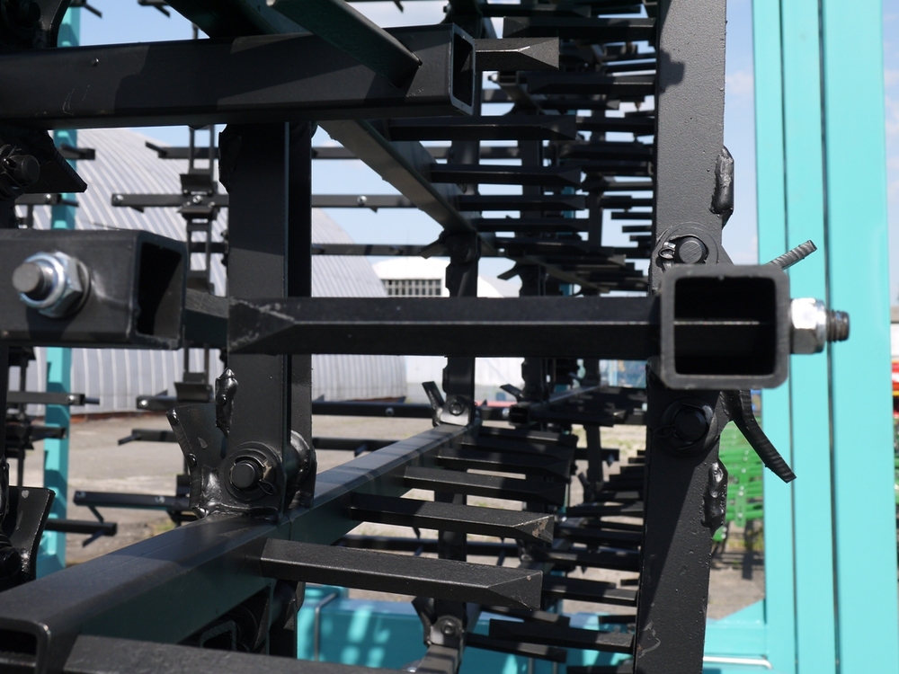 Борона зубова шлейфова БЗШ-7 Причіпна (напівпричіпна) робочої ширини 7 метрів, шлейф якої складається з 16 рядів зубів, зуб виготовлений зі сталі марки 65Г і термооброблений. Борона зубова шлейфова БЗШ-7 призначена для створення рівномірної пухкої кулі ґрунту; для обробки ґрунту ранньою весною (закриття вологи, вирівнювання поверхні поля і т.п), передпосівної підготовки ґрунту, догляду за парами.