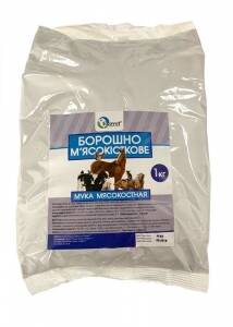 Кормова добавка з ВИСОКОЯКІСНОЇ СИРОВИНИ М'ЯСОКІСТКОВЕ БОРОШНО ( для твариництва та кормовиробництва ) ТУ 15.1- 05395747002-2003 Склад: кальцій - 35 %, фосфор - 16 %, натрій, магній, калій, хлор, фтор, залізо, цинк, мідь, марганець, кобальт. Вміст протеїну 47,8%, вологи 11,4%, золи 22%, жиру 14,2%, клітковини 4,1% Застосовують для поліпшення обміну речовин, покращення апетиту, відновлення та підтримки співвідношення Са та Р в організмі, повноцінного росту молодих тварин, запобігання рахіту, підвищення продуктивності, покращення структури та міцності шкарлупи яєць. Норми вводу в корми: ВРХ - 50-100 г/гол., свині - 20-30 г/гол., собаки та коти - 5 г/10 кг., птиця - 5-15 % до корму. Зберігати в добре провітрюваному приміщенні при температурі не вище 25 С. Термін придатності - 6 місяців. Виробник: ТОВ "Фарбалюкс" Україна