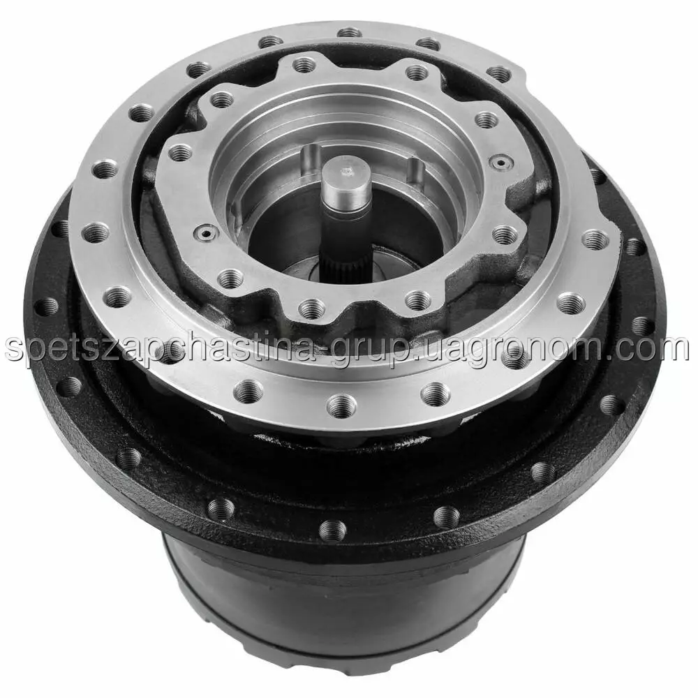 Ходовий редуктор без гідромотора в зборі для екскаватора Хітачі ZX 240 Опис: У екскаватора HITACHI 240 привод гусеничної стрічки відбувається за допомогою планетарного редуктора, встановленого в візку гідравлічного мотора. Корпус гідромотора з'єднується із корпусом редуктора, створюючи одне ціле. Таким чином, на лівий і правий ходовий візок припадають по одному редуктору та гідромотору. Редуктор виконаний таким чином, що частина корпусу є вихідною ланкою. До цієї частини корпусу кріпиться провідне колесо («зірочка») за допомогою болтів. редуктор ходу із гідромотором у зборі на екскаватор. Для замовлення ходового редуктора на екскаватор HITACHI ZX210  потрібно зателефонувати нам.