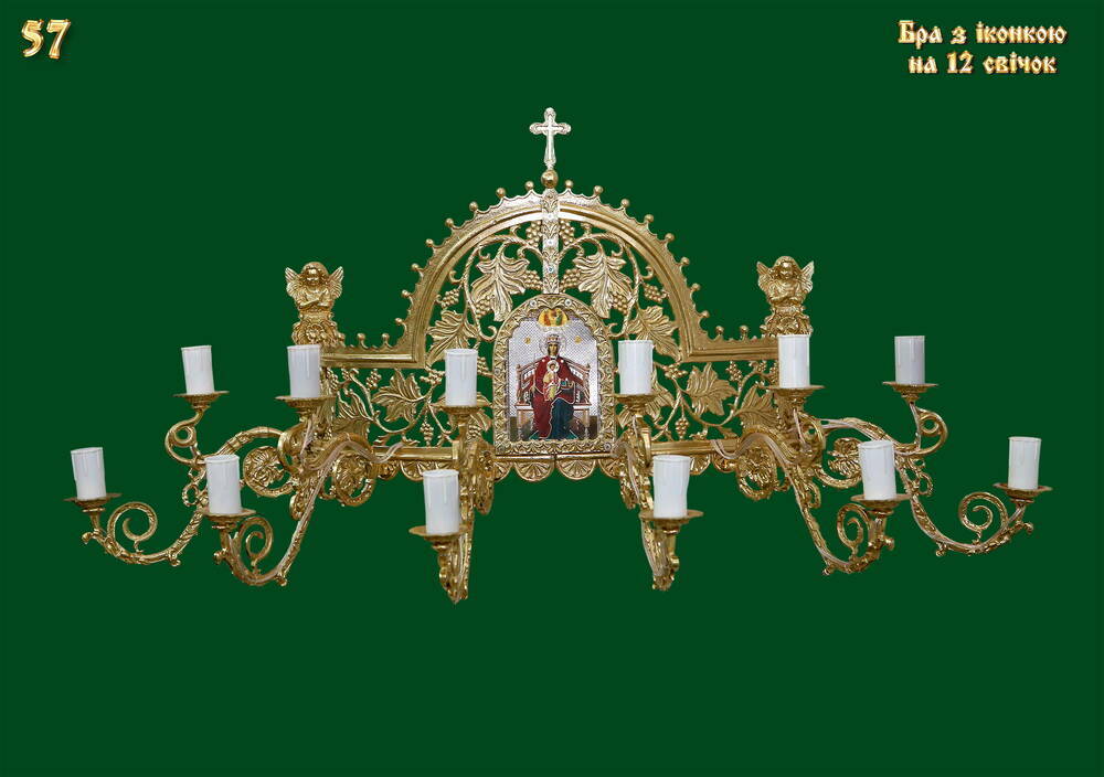 Невелике церковне бра на дванадцять свічок з латуні. Покрите