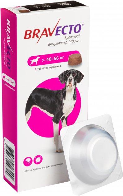 Бравекто (Bravecto) 1400 мг 1 таблетка для собак 40-56 кг (від блох і кліщів на 3 місяці) MSD Нідерланди (термін до 07.2026 р)