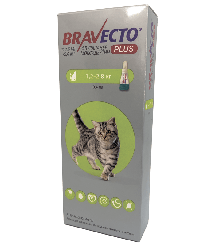 Бравекто плюс 112.5 мг краплі 1 піпетка для кішок 1.2-2.8 кг (від блохів і кліщів до 12 тижнів) MSD