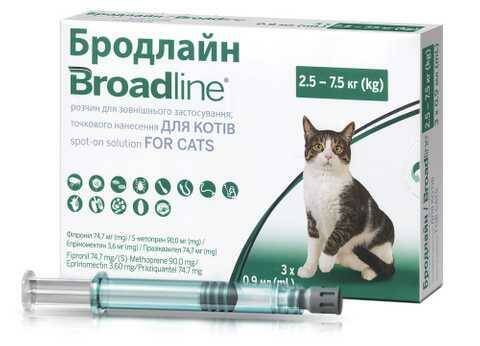 Бродлайн Спот-он для котов 2.5 - 7.5 кг (упаковка №3 пипетки 0.9 мл) Merial Франція