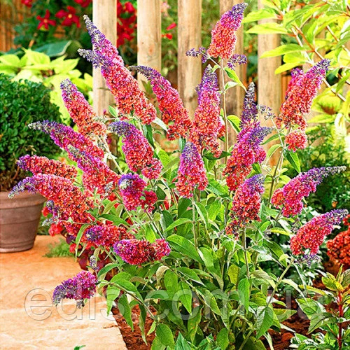 Садовий центр Едіс пропонує багато сортів буддлеі Давида. Якщо вам цікаві інші рослини з річним терміном цвітіння, ми можемо запропонувати з чагарників: гортензії, будь-які види троянд, японські спіреї, гібіскуси, лавровишні, пузыреплодники та інші красивоцветущие чагарники. Вибирайте також партнерів декоративних кущів серед летнецветущих трав'янистих багаторічників (лилейники, астильби, дельфініуми, дзвіночки, кореопсис, лаванда, ліатріс, сантолина, флокси волотисте, деревію, ехінацеї, летнецветущие цибулинні (у нас шикарний вибір лілій, наприклад). Жоден сучасний сад не обійдеться бех хвойних рослин