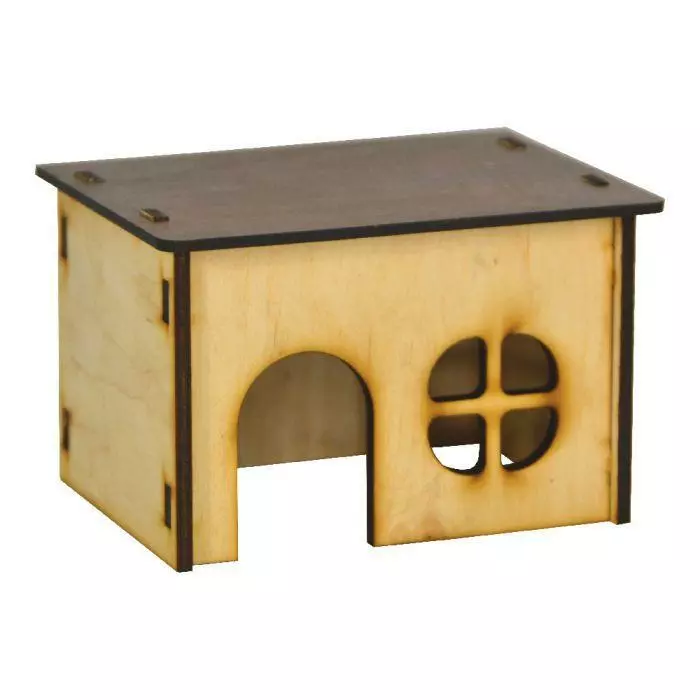 Дерев'яний будиночок для хом'яків та інших дрібних гризунів буде затишним куточком для відпочинку саме цього пухнастого улюбленця. Можна розмістити у будь-якому зручному для споглядання місці на дні клітки або на додатковій поличці.