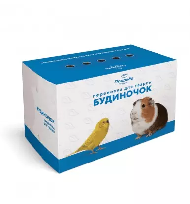 Будиночок-переноска для тварин зроблений з цупкого картону. Він легко відкривається, та надійно закривається за допомогою вирізів. Зверху будиночок має отвори для вентиляції.