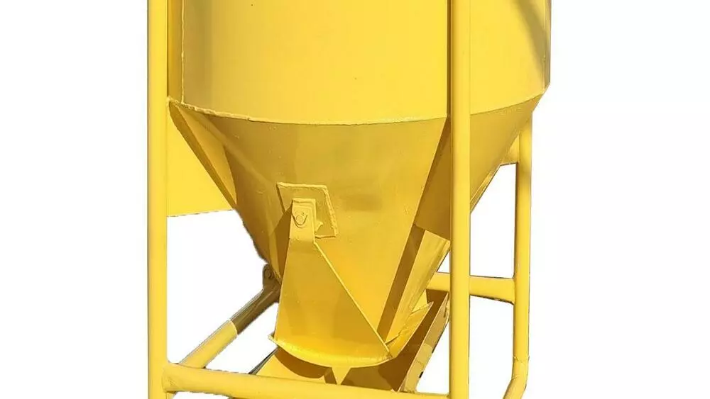 Емкость для готовой бетонной смеси , бадья для бетона, бункер неповоротный/поворотный изготовлен согласно ГОСТ 21807-76 “Бункера (бадьи) переносные вместимостью до 2 м.куб. для бетонной смеси” предназначены для загрузки и последующей транспортировки бетона к месту заливки его в опалубку как бетонных перекрытий, так и колон монолитно-каркасных конструкций. В конструкции бадьи круглой, для удобства выгрузки бетона установлен лоток плавной, локальной выгрузки смеси.