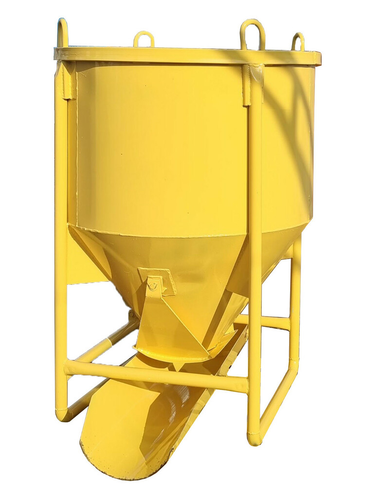Емкость для готовой бетонной смеси , бадья для бетона, бункер неповоротный/поворотный изготовлен согласно ГОСТ 21807-76 “Бункера (бадьи) переносные вместимостью до 2 м.куб. для бетонной смеси” предназначены для загрузки и последующей транспортировки бетона к мест заливки его в опалубку как бетонных перекрытий, так и колон монолитно-каркасных конструкций. В конструкции бадьи круглой, для удобства выгрузки бетона установлен лоток плавной, локальной выгрузки смеси.