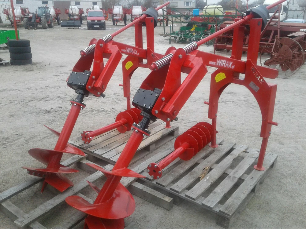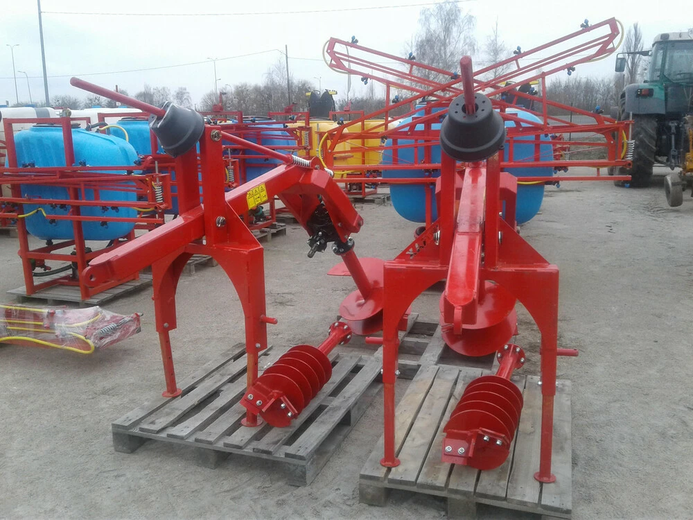 Представляємо універсальний ямобур польського виробництва для тракторів. Вага свердла: Ø500 mm 27 кг, Ø250 mm 24 кг, передаточне число редуктора 1,61. Шнеки бура мають таку форму гвинтовий робочою поверхнею, яка забезпечує мінімальне розкидання грунту з виритої лунки. Це дозволяє скоротити час на подальші роботи із засипання ям. Робоча частина бура зроблена з дуже міцного металу, і тому йому під силу навіть тверді грунти.