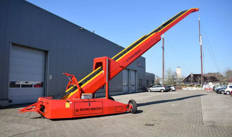 Складські буртоукладачі / навантажувачі Bijlsma Hercules серії BHV для закладання картоплі, цибулі в сховища при навальному способі зберігання продукції, сконструйовані таким чином, що всі компоненти надійно закриті та добре захищені від усіх зовнішніх впливів. Ці компоненти легко доступні для обслуговування при демонтажі захистних панелей, які легко знімаються.  Дана машина надзвичайно маневрена. Додатковою перевагою є те, що управління розташоване в противазі і не виступає за межі машини, тому жодні виступаючі  частини не рухаються вперед-назад під час повороту. BHV доступний довжиною 15, 17 і 19 метрів.
