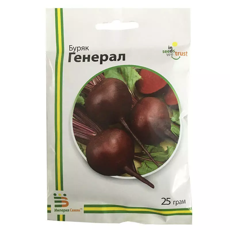 Буряк Генерал – один із найпопулярніших середньостиглих сортів столового буряка. Період від сходів до технічної стиглості 100-110 днів. Бадилля темно-червоне, коренеплоди округлої, трохи плескатої форми, масою від 250 до 450 грамів. Рослина слабо піддається стрілкуванню. Смакові якості буряків - чудові, ідеальний для приготування різноманітних салатів, закусок, перших страв, соків та зберігання в зимовий період.