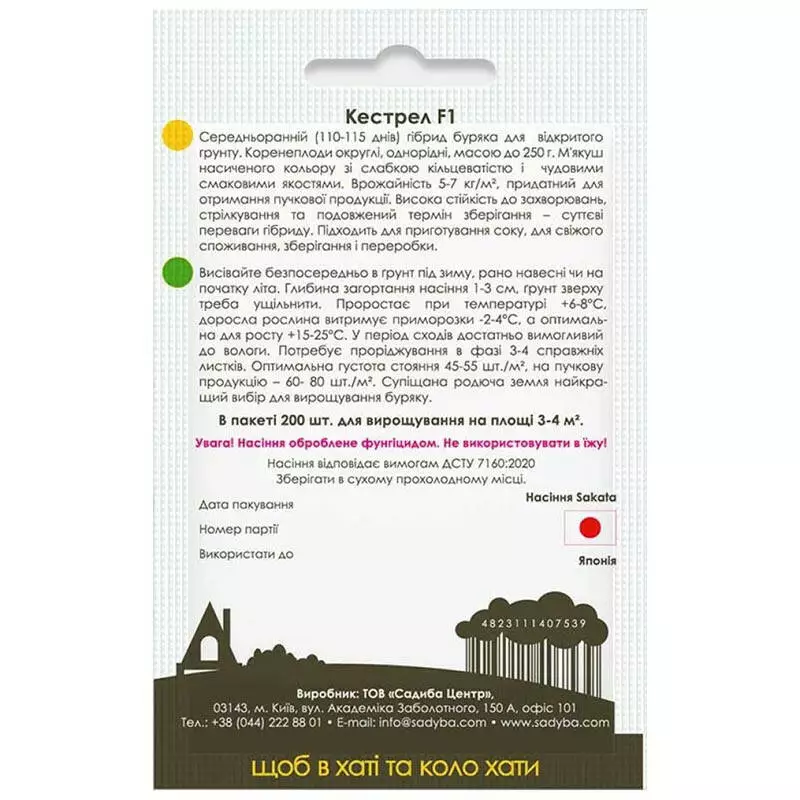 Буряк Кестрел F1 - середньоранній (110-115 днів) гібрид буряка для відкритого ґрунту. Коренеплоди округлі, однорідні, масою до 250 г. М'якуш насиченого кольору зі слабкою кільцеватістю і чудовими смаковими якостями. Врожайність 5-7 кг/м², придатний для отримання пучкової продукції.