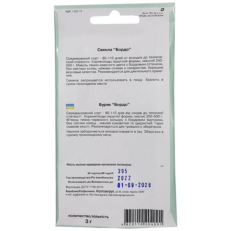 Буряк столовий Бордо 237, 3 г, Агропакгруп