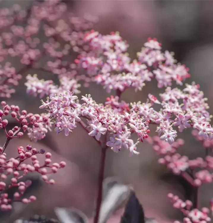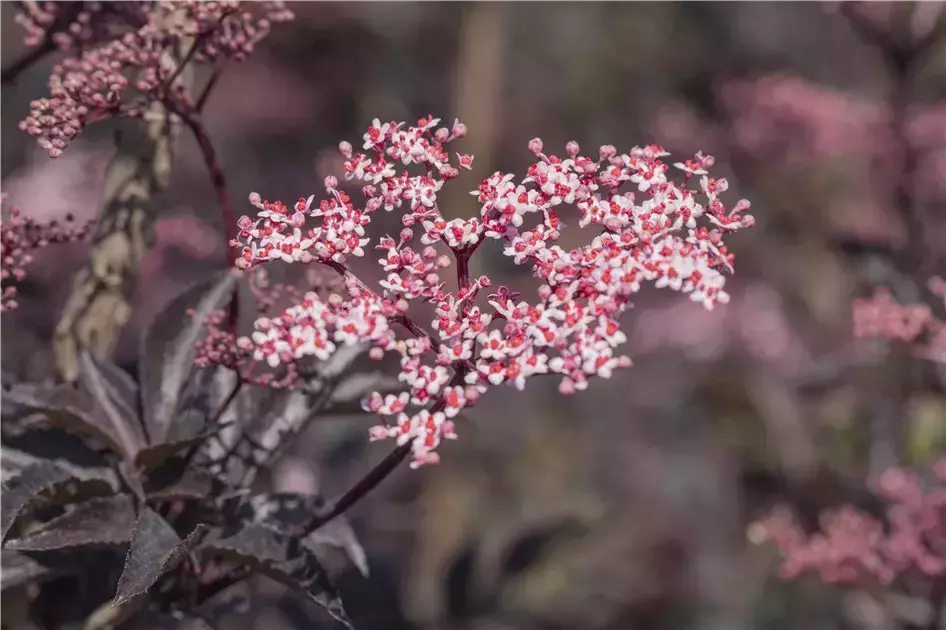 Форма: листопадний, широкий, вертикальноростаючий, пухкий великий чагарник. Іноді невелике дерево з коротким стовбуром, округлою або високо-склепчастою кроною і гілками, що звисають. Розмір: висота 3-5 метрів, ширина 2-4 метри. Річний приріст у висоту близько 50 см, завширшки 40 см. Листя: супротивно розташовані, непарноперисті, темно-багряні, майже чорні, блискучі, мають неприємний запах при розтиранні, рано розпускаються і пізно опадають, без зміни забарвлення. Цвітіння: квітки світло-рожеві зібрані у великі щитки 10-20 см, цвіте у червні-липні. Плоди: блискучі, чорні, округлі, дуже соковиті, їстівні, дозрівають у серпні-вересні. Кора: молоді пагони товсті, світло-сірі з чечевичками, стара сіра кора, тріщинувата, пробкова. Коріння: широко розпростерте, густо розгалужене. Ставлення до світла/інсоляція: напівзатінене, сонячне місце. Вид грунту: в цілому невибаглива, віддає перевагу свіжим, гумусним, багатим азотом, вапняним грунтам, добре росте на піщаних, сухих субстратах. Висаджувати на ділянці слід вже одно-, дворічні рослини. Вибираємо північний або східний край ділянки, для гарного запилення рослини бажано, щоб поруч знаходилися інші різноманітні рослини. Посадка здійснюється навесні або восени у хорошу, теплу погоду: готуються ями, чия ширина і глибина повинна відповідати кореневій системі рослини (близько 50 см). У ямі, перемішавши з верхнім родючим шаром ґрунту, повинні бути додані 7-8 кг перегною, 30-50 г калійних добрив та 50 г фосфорних. Закопуються чагарники до кореневої шийки. В якості штамби можна використовувати кіл, які по висоті повинні трохи не досягати нижніх гілок. Підв'язувати кущі не потрібно. Після посадки рослину необхідно полити і обов'язково слідкувати за вологістю ґрунту до хорошого приживання. Догляд: невибаглива, на початку літнього сезону рекомендуємо трохи підгодувати органічними добривами. Додатковий полив необхідний лише за посушливу або спекотну погоду. Навесні бузину бажано обрізати, що простимулює зростання нових пагонів. Хвороби та шкідники: у жарку посушливу погоду бузина може бути піддана атаці попелиці або павутинного кліща, в результаті якої її листя починає згортатися. Головне визначити шкідника (діагноз) для того, щоб правильно вибрати засіб захисту рослин. Необроблені рослини можуть уражатися Антракнозом (плямистість листя), борошнистою росою та попелицею. Щоб захистити рослину від хвороб та грибкових інфекцій необхідно обробляти рослини фунгіцидами (Скор, Світч, Максим, Ордан, Хорус, Квадріс, Рідоміл Голд тощо). Безперечно, краще, щоб «діагноз» ставив фахівець. Але як правило, сучасний садівник за допомогою інтернету може самостійно ідентифікувати ворога і правильно вибрати методи та засоби захисту рослини. Краще 1 раз на місяць проводити профілактичні обробки, ніж лікувати, коли шкідник розмножується і «доїдає» рослину. Приклад – війна садівників та українців із колорадськими жуками, які, як і їхні людські «ватні» однофамільці – «колоради», дуже небезпечні та ненажерливі. Актора 1гр на 1л полив під корінь по 30-100 г під рослину в залежності від розміру. Особливості: бузина давно виборола собі право вважатися фаворитом саду. Різноманітні види бузини пропонують чудове листя, яскраву осінню палітру та чудові ягоди. Гарне поєднання рожевих квіток у щитках з темно-червоним листям.