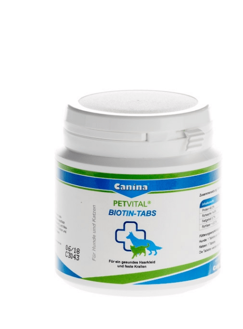 PETVITAL BIOTIN-TABS містить дуже велику кількість вітаміну H (біотин), який надає специфічний вплив на ріст волосся та пігменти волосся. PETVITAL BIOTIN-TABS були спеціально розроблені для дорослих тварин та характеризуються дуже високим рівнем сприйняття смаку.