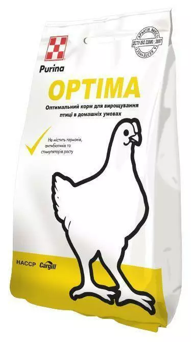 Склад: пшениця, кукурудза, соєва макуха, ріпаковий та соняшниковий шрот премікс вітамінно-мінеральний, амінокислоти, борошно вапнякове, монокальцій фосфат, олія соняшникова, сіль, антиоксидант.