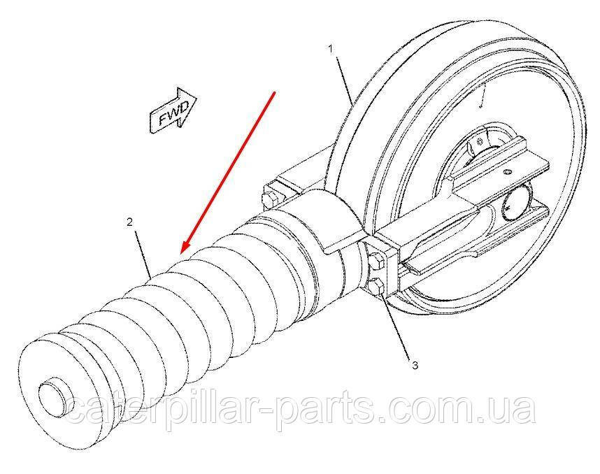 Натягувач гусениці 2394338 є частиною ходової системи гусеничної техніки. Він працює в комплексі з провідними зірочками, направляючими колесами та катками, щоб підтримувати натяг гусениць.