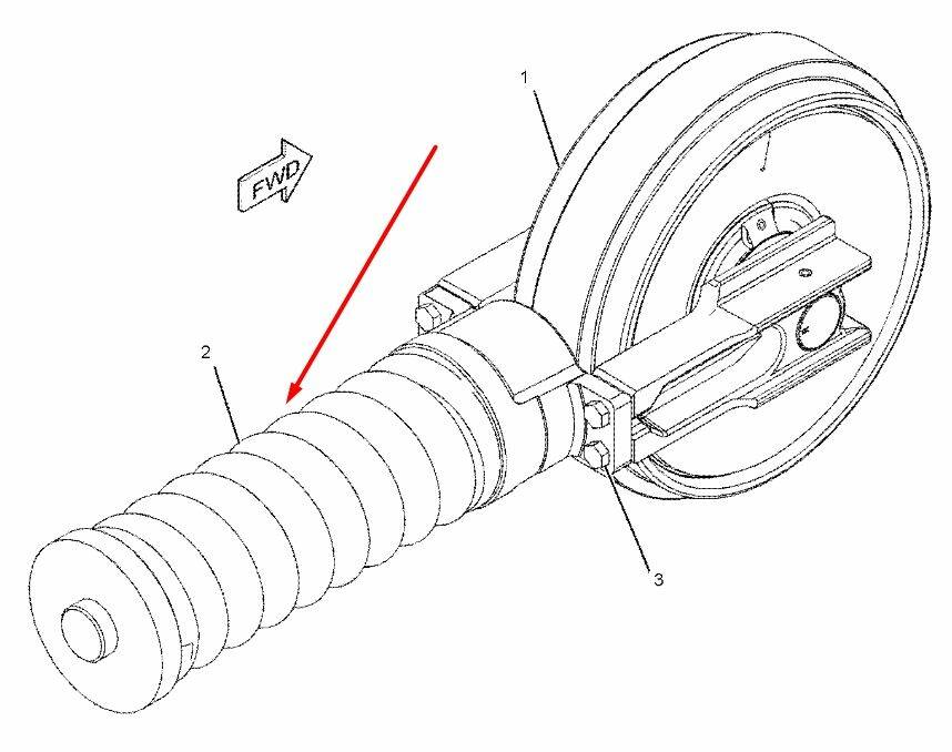 Натягувач гусениці 2394338 є частиною ходової системи гусеничної техніки. Він працює в комплексі з провідними зірочками, направляючими колесами та катками, щоб підтримувати натяг гусениць.