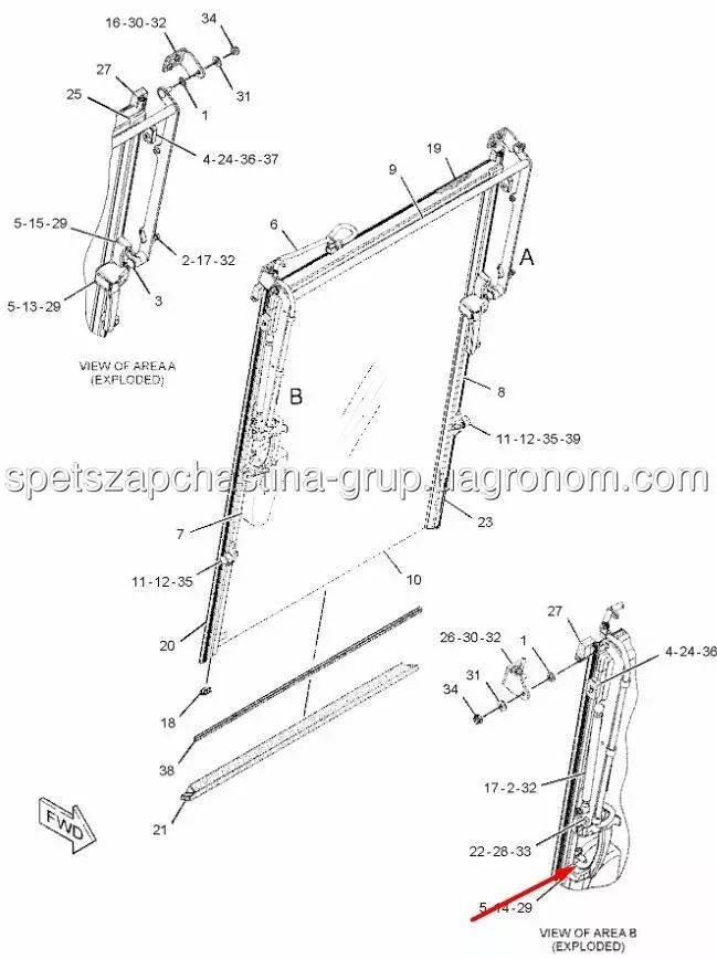 Права дверна ручка для кабіни оператора CATERPILLAR 422E, 422F, 428E, 428F, 432E, 432F, 434E, 434F, 442E, 444E, 444F (cat, кат, катерпілар)