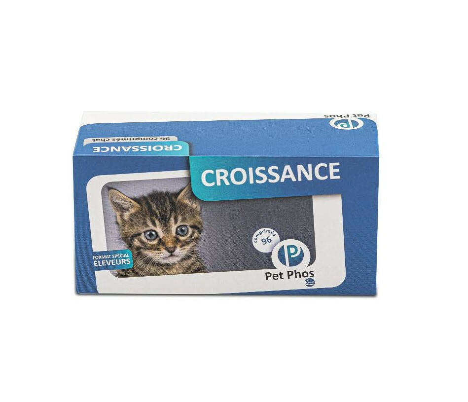 Вітаміни Pet Phos Croissance Cat - вітамінно-мінеральний комплекс для кошенят, що ростуть, вагітних або лактуючих кішок, котів з ослабленим здоров’ям, з примхливим апетитом або тих, що отримують незбалансований раціон харчування.