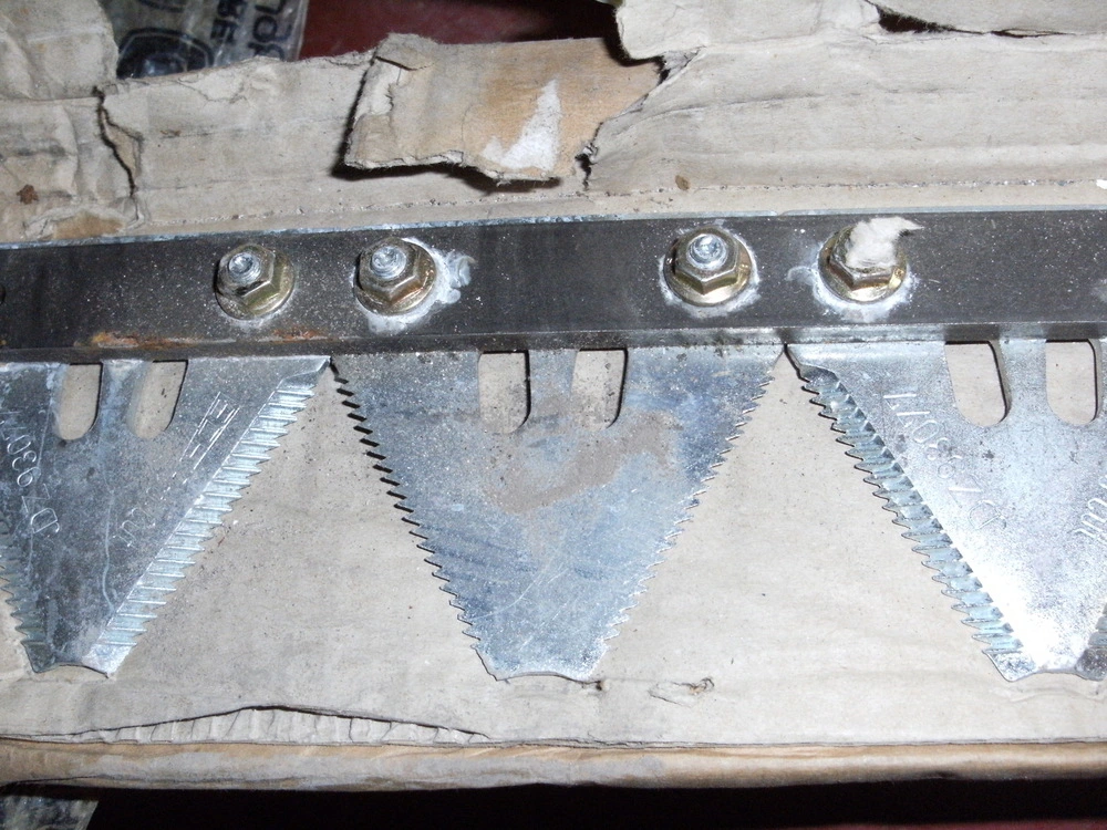 Це кінцевий блок різального апарату, що складається зі сталевої шини та встановлених на болтах сегментів з крупною насічкою. Спеціально розроблений для високої швидкості зрізу (система Schumacher). Шина виготовлена з хром-легованої сталі, що мінімізує ризик зламу в зоні кріплення до головки ножа.