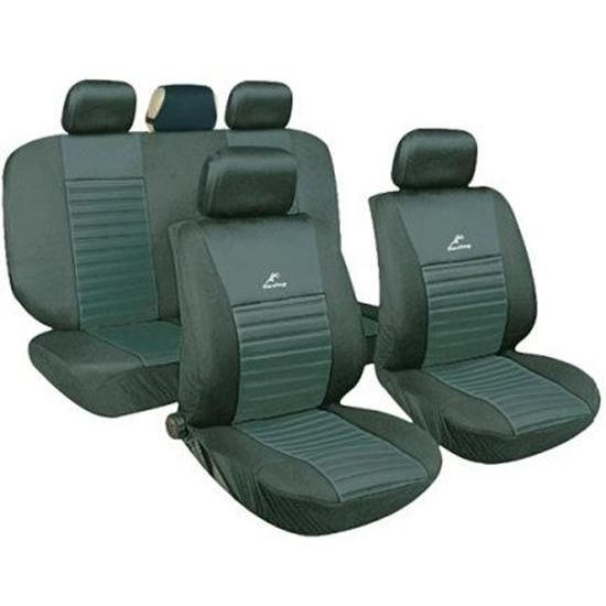 В комплекте - 2 чехла на переднее сидение с защитой подголовника плюс чехлы на задний диван, чехол на руль и чехлы на ремни безопасности.
