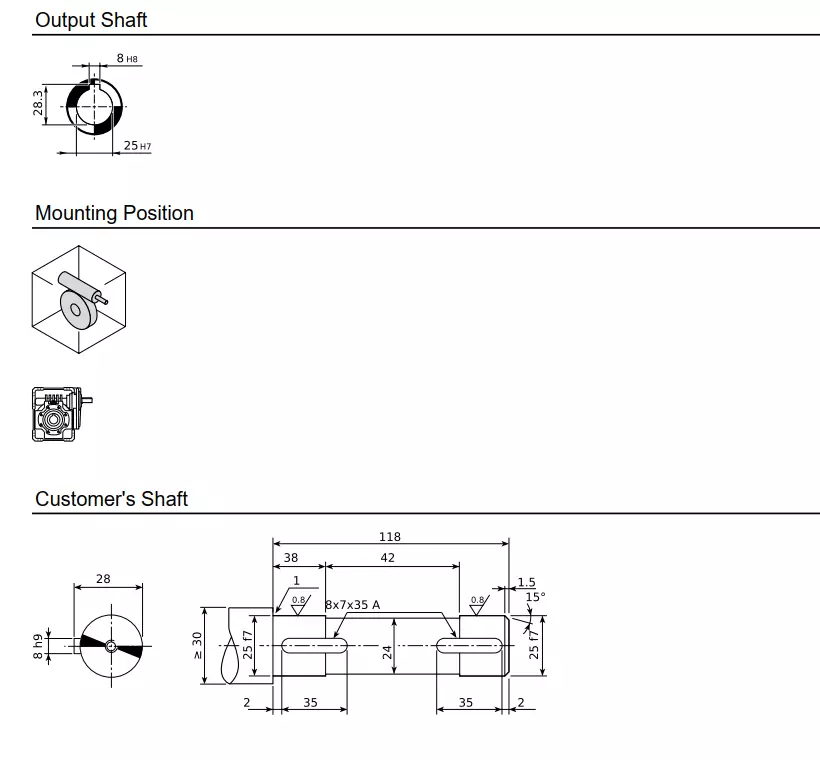 7. S2 — конфігурація на вході (P IEC — двигун і редуктор, S — редукторний електродвигун, HS — вхідний циліндричний вал);
