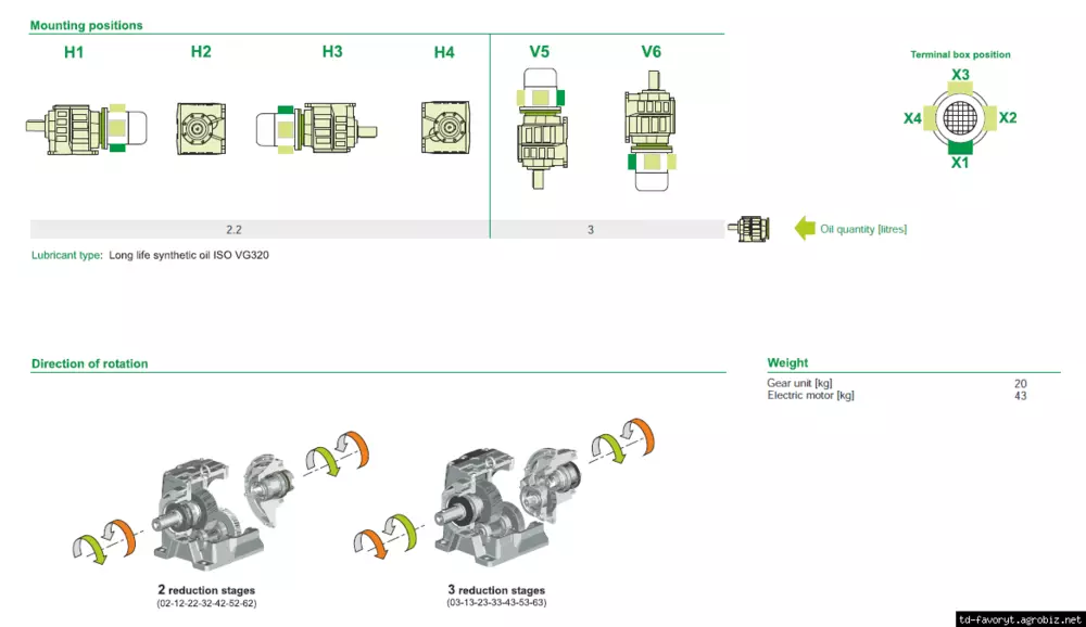 в любом положении. Двухступенчатые или трехступенчатые редукторы