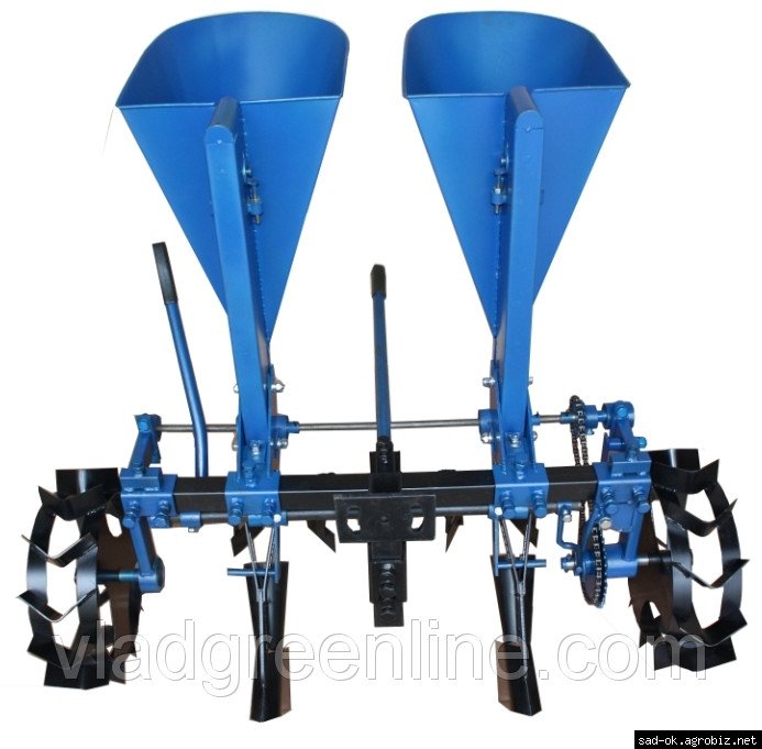 Агрегатируется с мотоблоками и мототракторами мощностью от 6 л.с. Грунт требует подготовки. Для посадки нужно использовать откалиброванные зубки чеснока размером 15-25 мм. Ёмкость бункера для посадочного материала 10 литров, количество бункеров — 2 шт.