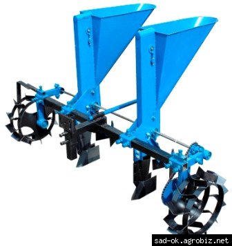 | Комплектация: | бункер — 2шт., транспортёр- 2 шт., рама- 1 шт., опорно-приводное колесо — 2 шт., цепной привод- 1 шт., маркер ряда; |