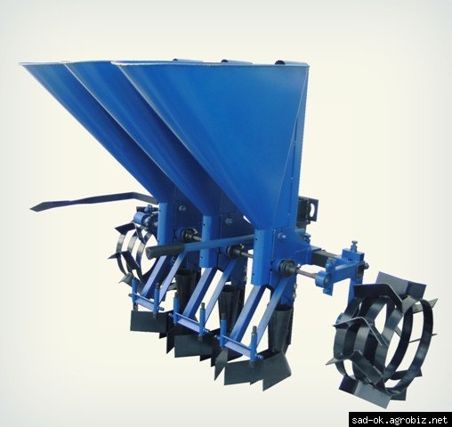 | Комплектация: | бункер — 3 шт., транспортёр- 3 шт., рама- 1 шт., опорно-приводное колесо — 2 шт., цепной привод- 1 шт., маркер ряда; |