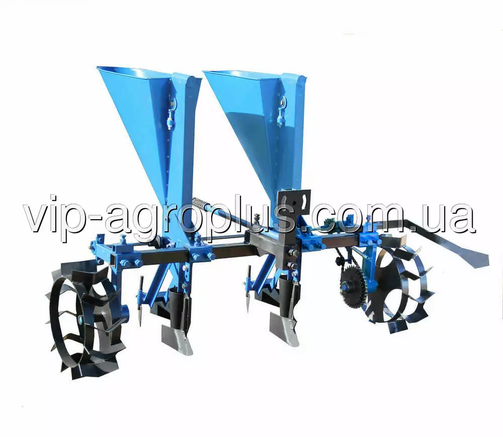 Агрегатируется с мотоблоками и мототракторами мощностью от 6 л.с. Грунт требует подготовки. Для посадки нужно использовать откалиброванные зубки чеснока размером 15-25 мм. Ёмкость бункера для посадочного материала 10 литров, количество бункеров — 2 шт.