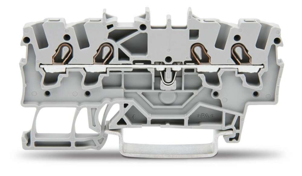 Чотирипровідні прохідні клеми Wago на Дин рейку, 1,5; підходять для виконань Ex e II; бічна і центральна маркіровка; для DIN- рейки 35 x 15 і 35 x 7,5; Push - in CAGE CLAMP®; 1,50 mm²; сірі.