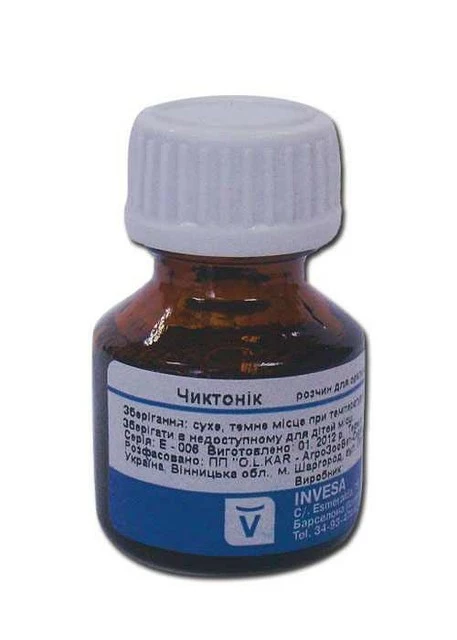 Чиктонік Іспанія Invesa флакон (10 мл) - розрачна рідина жовто-коричневого кольору.