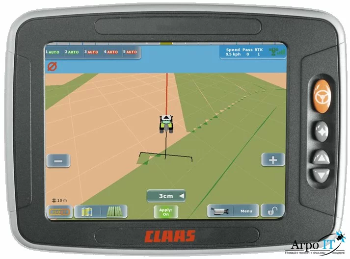Новий термінал S10 - це самий універсальний термінал. Крім вже відомих функцій (AUTOTURN, SECTION VIEW, управління завданнями, управління опорними лініями) термінал S10, оснащений дисплеєм 10,4" з високим дозволом і сенсорним екраном, має цілий ряд додаткових функцій і елементів управління. За допомогою терміналу S10 можна, наприклад, управляти сумісними з ISOBUS навісними знаряддями. Крім того, в терміналі S10 можна додатково активувати прийом супутникових сигналів системи ГЛОНАСС.