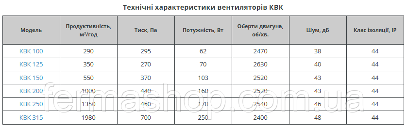 Дані вентилятори використовуються у припливно-витяжній вентиляції громадських приміщень (магазини, кафе, бари, ресторани), санітарно-побутових приміщень, житлових приміщеннях, а також на промислових об'єктах (ангари, склади, гаражі, майстерні) та мають технічні характеристики, які вказані в таблиці (дивись фото).