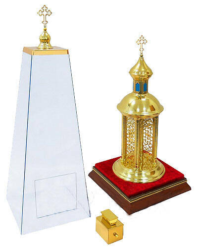 Доохоронці – гарна посудина у вигляді храму з скринькою для зберігання Тіла і Крові Господньої. У нашому інтернет-магазині церковного начиння ви можете вибрати вироби з латуні з карбуванням, лаком, позолотою. У комплекті йде ковпак із оргскла.