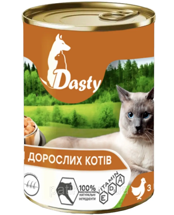 "Dasty"-повноцінний вологий корм для дорослих кішок, птиця, 415гр
