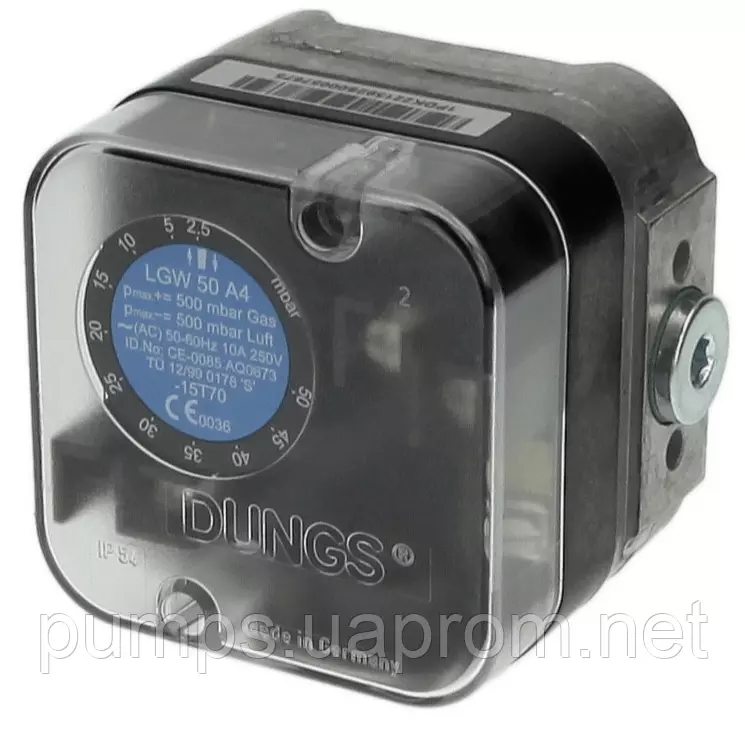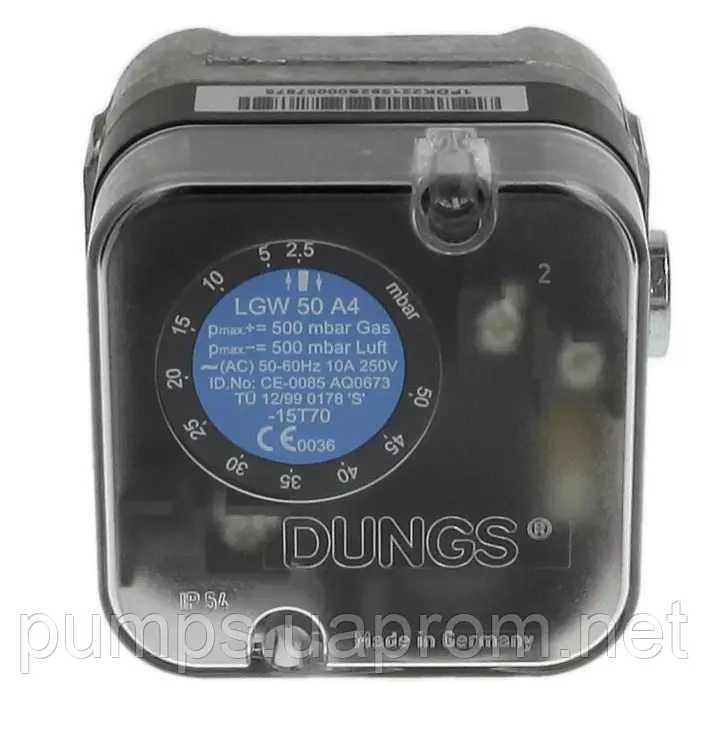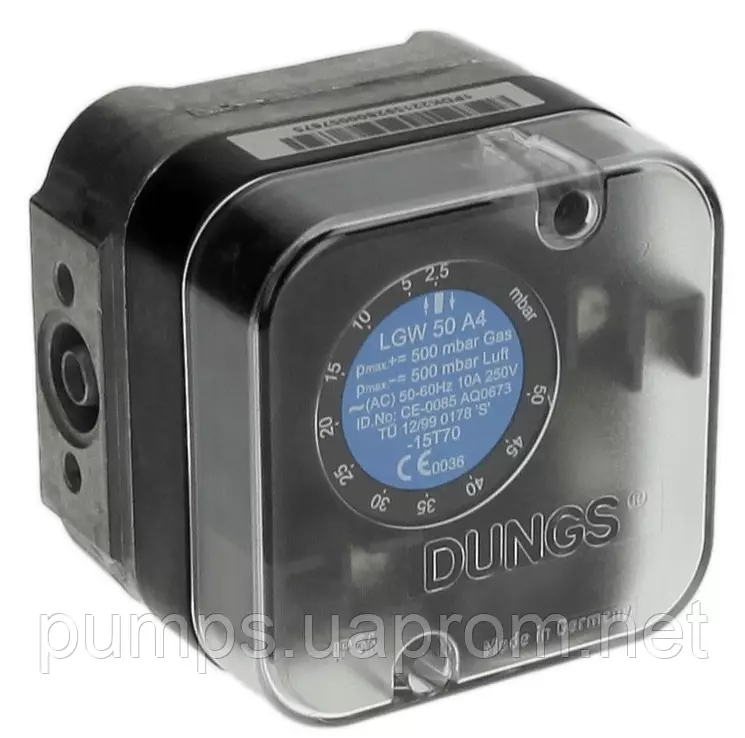 Реле тиску типу LGW...A4 — регульоване диференціальне реле тиску для топкових агрегатів. Воно слугує для увімкнення, вимкнення або перемикання електричного ланцюга на задане значення тиску під час зміни дійсного значення. Задане значення (параметр перемикання) встановлюється за допомогою регулювального коліщатка зі шкалою. У металевому корпусі є вимірювальний фланець.