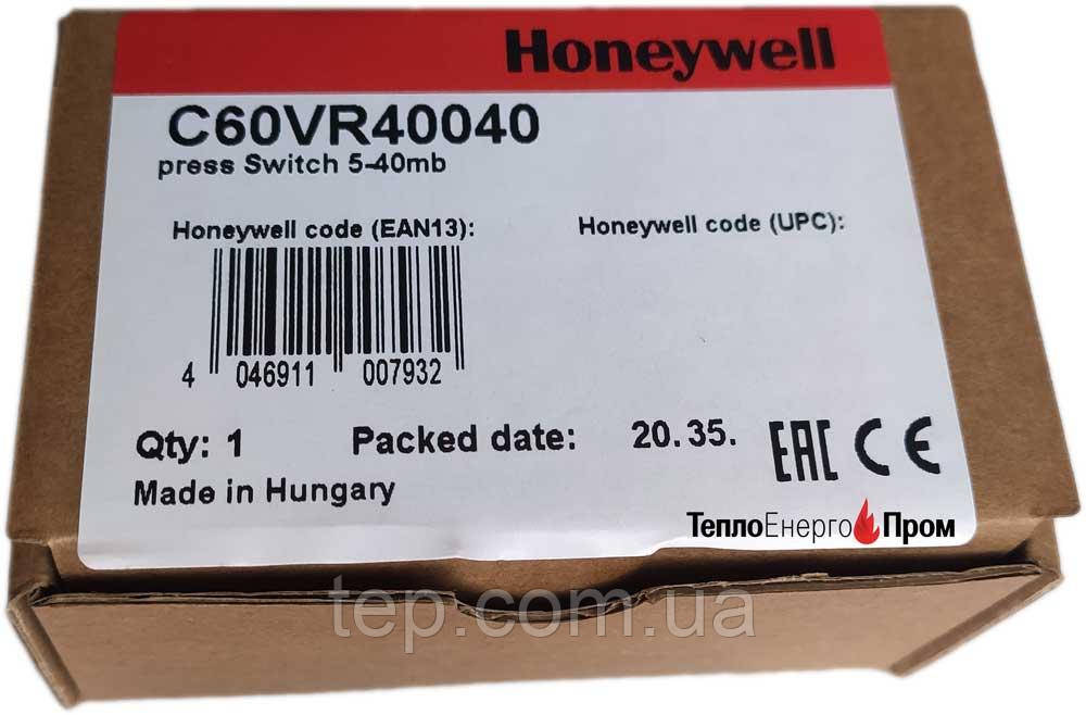 Реле тиску газу C60VR40xxx виконує функцію контролю мінімального тиску газу на вході з блокуванням безпечного пуску. У поєднанні з газовим регулятором VR400 або VRB SPDT-контакт використовується як частина ланцюга перевірки безпечного пуску. Пальник не працюватиме, якщо тиск газу на вході не буде вищий задане значення.