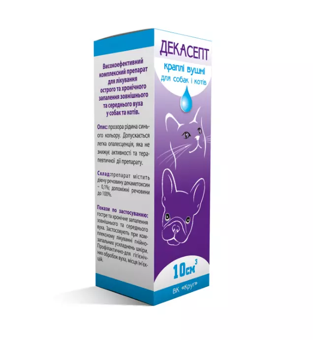"Декасепт" 10 мл вушні краплі для котів і собак (Круг)