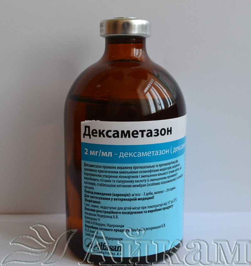 собаки, коти - 0,25 - 0,5 мл препарату на 5 кг маси тіла або 0,1 - 0,2 мг дексаметазону на 1 кг маси тіла. При необхідності ін’єкцію повторюють через 2 доби;