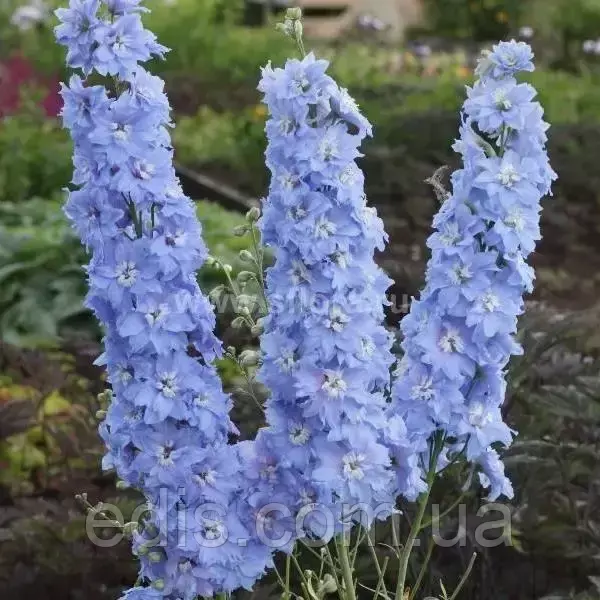 Високорослі багаторічні гібридні Дельфініуми – шикарна масивна вертикаль для літньої клумби на сонячній ділянці або самодостатній яскравий солітер на газоні.