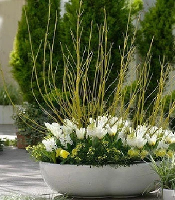 По праву заслужив найпоширеніше застосування в озелененні, не тільки за свою невибагливість, але і через високі -декоративні властивості. Навесні і восени пагони жовто-оливкові або зеленувато-оливкові. Листя загострені, овальні, зелені глянцеві. Восени можлива зміна забарвлення в червонуваті тони. Квіти жовтувато-білі в щитковидних суцвіттях. У серпні дозрівають білі плоди. Не примхливий, росте на будь якому, вологому грунті. Не любить посухи. Вражаюче виглядає в комбінації з хвойними, багаторічниками, відмінний і в одиночній посадці. З його допомогою можна створити вражаючі ландшафтні композиції біля водойм, серед каменів, в альпінаріях, міксбордерах.
