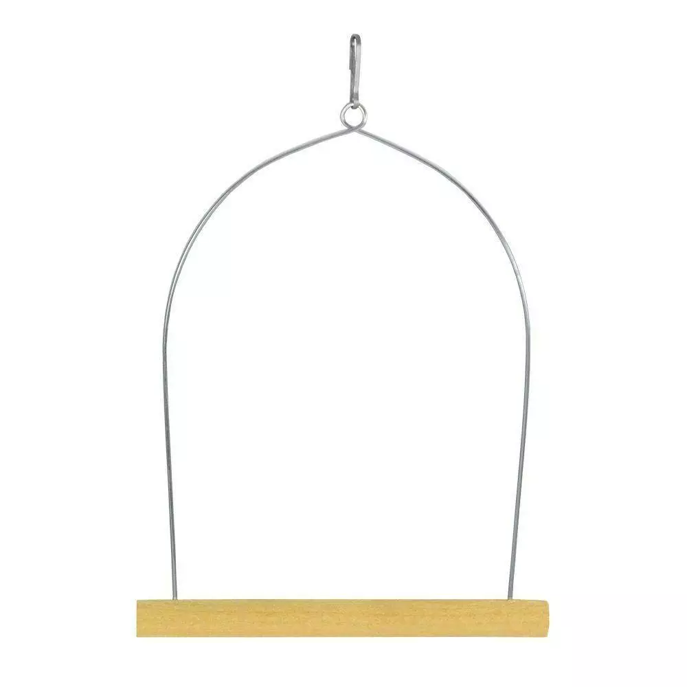 Гойдалки для папуг виготовлені з безпечних матеріалів: металевої дуги та жердинки з натурального дерева.