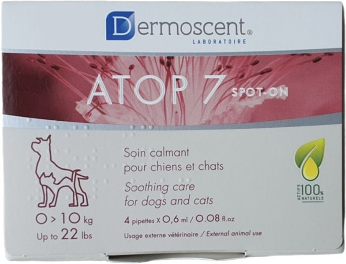 Натуральний засіб Dermoscent ATOP 7 застосовується для відновлення шкіри тварин при дерматитах різного походження, що допомагає заспокоїти подразнену або схильну до алергії шкіру.
