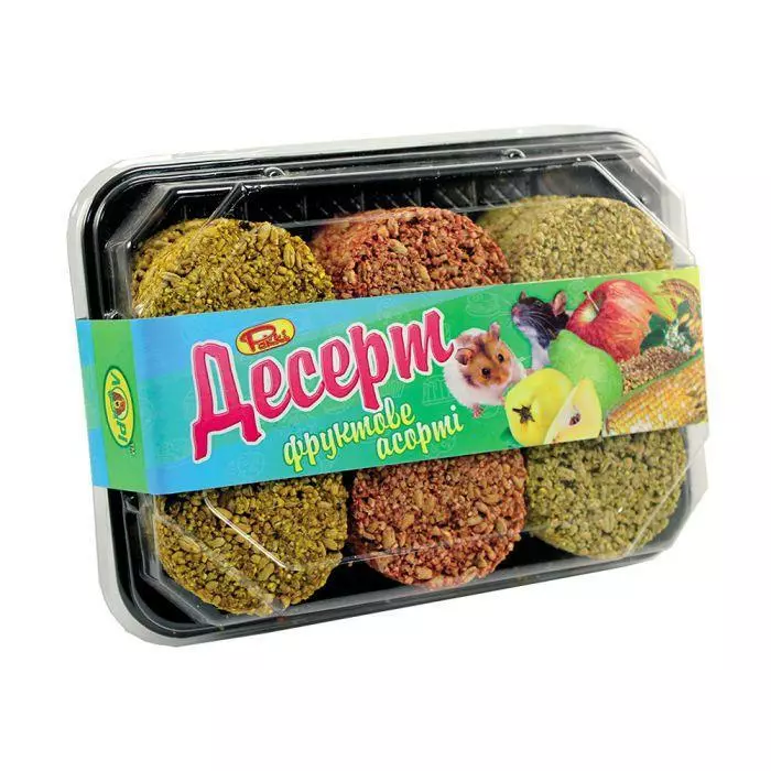 ДЕСЕРТ ДЛЯ ГРЫЗУНОВ ФРУКТОВЫЙ Зернові ласощі для гризунів необхідні для доповнення і різноманітності раціону. Додатки у формі крекерів дають можливість тварині, відлущуючи зерна, реалізовувати інстинктивну потребу добувати собі їжу в природних умовах.