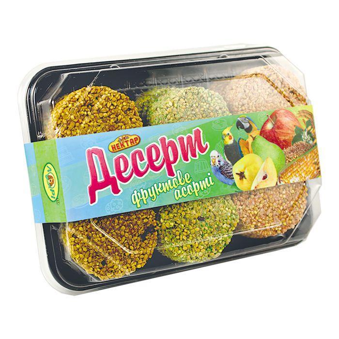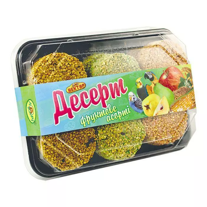 Десерт для птахів Фруктовий (12 шт) - зернові ласощі для птахів необхідні для доповнення та урізноманітнення раціону пернатих. Додатки у формі крекерів дають можливість птаху, відлущуючи зернятка, реалізовувати інстинктивну потребу добувати собі поживу наче у природніх умовах. До того ж, для них – це справжня гра, яка подарує пернатому неймовірний смак та користь для організму вцілому.