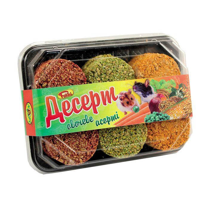 ДЕСЕРТ ДЛЯ ГРИЗУНІВ ОВОЧЕВИЙ Зернові ласощі для гризунів необхідні для доповнення і різноманітності раціону. Додатки у формі крекерів дають можливість тварині, відлущуючи зерна, реалізовувати інстинктивну потребу добувати собі їжу в природних умовах.